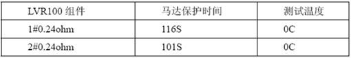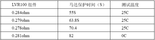 表2:典型值電阻的LVR100和功率電阻集成的組件在0C/25C下馬達(dá)保護(hù)時間