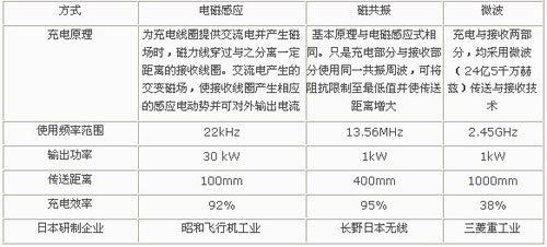 非接觸充電裝置有電磁感應(yīng)、磁共振、微波三種方式。