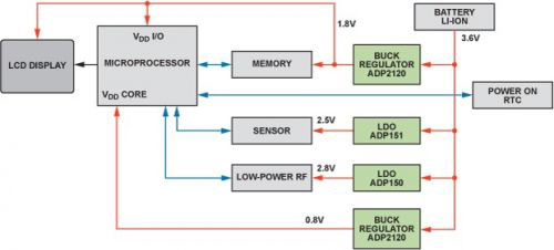 智能手機(jī)、平板電腦、數(shù)碼相機(jī)、導(dǎo)航系統(tǒng)、醫(yī)療設(shè)備和其它低功耗便攜式設(shè)備常常包含多個采用不同半導(dǎo)體工藝制造的集成電路。這些設(shè)備通常需要多個獨(dú)立的電源電壓,各電源電壓一般不同于電池或外部 AC/DC電源提供的電壓。