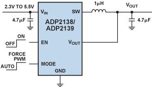 圖 4. ADP2138/ADP2139典型應(yīng)用電路