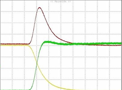 開關損耗其實也是一個很重要的指標。從下圖可以看到,導通瞬間的電壓電流乘積相當大。一定程度上決定了器件的開關性能。不過,如果系統(tǒng)對開關性能要求比較高,可以選擇柵極電荷QG比較小的功率MOSFET。