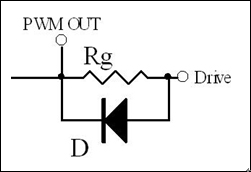 以上討論的是MOSFET ON狀態(tài)時電阻的選擇,在MOSFET OFF狀態(tài)時為了保證柵極電荷快速瀉放,此時阻值要盡量小。通常為了保證快速瀉放,在Rg上可以并聯一個二極管。當瀉放電阻過小,由于走線電感的原因也會引起諧振(因此有些應用中也會在這個二極管上串一個小電阻),但是由于二極管的反向電流不導通,此時Rg又參與反向諧振回路,因此可以抑制反向諧振的尖峰。