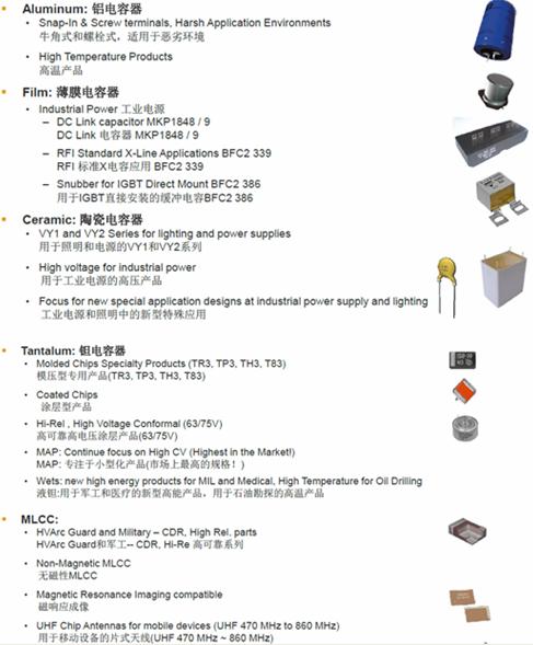 在光伏逆變器和風(fēng)電變流器中,DC-link薄膜電容可用作穩(wěn)壓濾波,預(yù)期壽命大于15年,具有更低的損耗,更好的穩(wěn)定性,而且用4~6薄膜電容 MKP1848/9就能替換掉采用60~80個(gè)電解電容器的老式設(shè)計(jì);101/102 PHR-ST非常適合高功率開(kāi)關(guān)轉(zhuǎn)換器中的直流母線電容器和脈沖電源應(yīng)用中的能量?jī)?chǔ)存。除新能源領(lǐng)域外,Vishay還給我們帶來(lái)了高可靠鉭電、高可靠MLCC在軍工、逆變器、列車(chē)牽引機(jī)等一些領(lǐng)域上的應(yīng)用與選型。