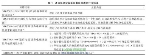 我國(guó)通信電源執(zhí)行的電磁兼容標(biāo)準(zhǔn)基本參照了IEC61000系列、EN55022、CISPR-22等國(guó)際和歐洲標(biāo)準(zhǔn)。具體標(biāo)準(zhǔn)見(jiàn)表1。