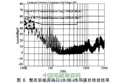 整改后的測(cè)試結(jié)果見(jiàn)圖6:整改后電源端口(L-線(xiàn))傳導(dǎo)騷擾。