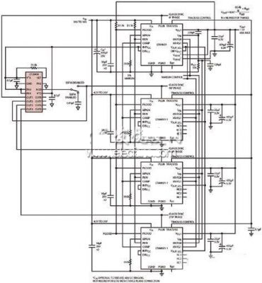 有些應(yīng)用集中于用4個(gè)并聯(lián)的μModule穩(wěn)壓器取代單個(gè)開關(guān),這將通過多相同步降低峰值開關(guān)電流。這些開關(guān)是由一個(gè)相位變化的時(shí)鐘從外部驅(qū)動(dòng)的。每個(gè)開關(guān)的接通時(shí)刻之間都是有間隔的,從而在輸入中產(chǎn)生均勻的電流分布。在這種大功率系統(tǒng)中,電壓紋波降低了。同步并聯(lián)穩(wěn)壓器的關(guān)鍵優(yōu)勢(shì)是,由于消除了輸入和輸出中的紋波電流,減小了輸入和輸出電容器的尺寸,從而消除了對(duì)大容量電容器的需求。