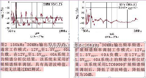 在密集排列的系統(tǒng)電路板上,開關(guān)模式DC/DC穩(wěn)壓器具有較低的熱耗散。然而,電流的快速切換、定義不完備的布局、電感器等組件的放置和選擇使組成的電路有可能成為主要的EMI(電磁干擾)源。此外,當(dāng)多個(gè)DC/DC開關(guān)模式穩(wěn)壓器并聯(lián)潛在的干擾和噪聲問題可能惡化。如果所有組件都在類似的頻率工作(切換),能量都集中在一個(gè)頻率上。這種能量的存在可能成為一個(gè)隱憂,尤其是當(dāng)PC板上其余的IC及其它系統(tǒng)電路板互相靠得很近,易受這種輻射能量的影響時(shí)。一種解決方案是,將這種能量擴(kuò)展到很多頻率,而不是集中在一個(gè)頻率,從而降低其幅度和強(qiáng)度。