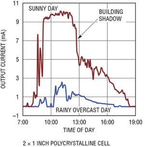 用光伏電池可產(chǎn)生多少功率取決于多種因素。電池的輸出功率與投射到電池上的光強(qiáng)度、電池的總面積以及電池的效率成正比。大多數(shù)光伏電池都規(guī)定在完全直射的太陽(yáng)光 (1000W/m2) 下使用,但是在大多數(shù)應(yīng)用中,不可能有這么理想的條件。就依靠太陽(yáng)光工作的設(shè)備來說,可從電池獲得的峰值功率可能非常容易變化,由于天氣、季節(jié)、煙霧、灰塵和太陽(yáng)光入射角的變化,今天與明天相比有可能相差10倍。在充足的太陽(yáng)光照下,晶體電池視電池特性的不同而有所不同,典型輸出功率約為每平方英寸40mW。面積為幾平方英寸的光伏電池足夠給多個(gè)遠(yuǎn)程傳感器供電以及給電池涓流充電了。