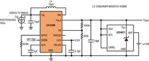 另一個(gè)關(guān)鍵考慮因素是能量存儲(chǔ)器件的充電速率。例如,最大充電電流為300μA的鋰離子幣形電池需要在電池和 LTC3105輸出之間有一個(gè)大的電阻器,以防止過流情況。這可能限制能收集的能量,從而減少可用于應(yīng)用的能量。