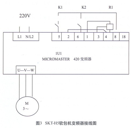 快事達粘膠實業(yè)有限公司購進的德國Profil-Clip GmbH公司生產(chǎn)的SKT-H5全自動軟包裝分裝機所采用的變頻器為西門子公司的420變頻器,接線圖如圖3所示,在2009年6月的雷雨天下顯示"F002”故障,表示是過電壓引起,期間共燒毀了三臺變頻器,究其原因,是由于電源系統(tǒng)未有采用防雷技術(shù)所致。后采用了圖1所示的電源防浪涌系統(tǒng)后,再沒有發(fā)生同類故障現(xiàn)象。
