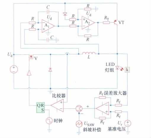 本文提出一種有源紋波補(bǔ)償BUCK 型LED 驅(qū)動(dòng)電路。該電路無需使用大容量電解電容,所需要的小容量電容可以采用能量密度較小的新型長(zhǎng)壽命電容,利用有源補(bǔ)償技術(shù)抑制輸出紋波電流。由于取消電解電容的使用,可以使電路壽命增長(zhǎng),穩(wěn)定性提高,便于集成,電路易小型化。