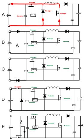 四開關(guān)非反相降壓-升壓有兩種操作模式,即降壓模式和降壓-升壓模式。在降壓模式下,轉(zhuǎn)換器產(chǎn)生輸入電壓脈沖,它經(jīng)過LC濾波來產(chǎn)生一個(gè)較低的直流輸出電壓。輸出電壓可以通過修改相對于開關(guān)周期或開關(guān)頻率的導(dǎo)通時(shí)間來改變。