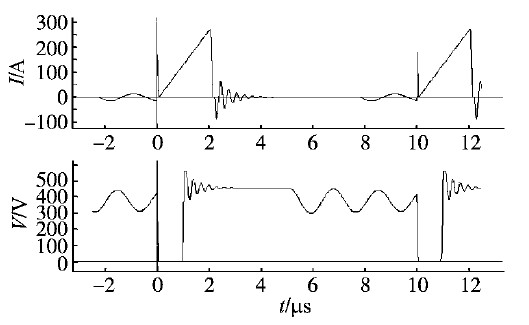 文獻(xiàn)基本都是用梯形波來表示噪聲源的,但實(shí)際中并不是每個(gè)電路中的開關(guān)器件的波形都能很好地用梯形波近似,圖3所示即為一個(gè)反激電源開關(guān)管的電流電壓波形,除了梯形波之外,還有電流尖峰,電壓過沖和下沖等分量,會(huì)導(dǎo)致噪聲源的頻譜與梯形波有一定的不同。所以不能盲目地使用梯形波來表征噪聲源,而是需要對(duì)電路進(jìn)行分析或者仿真,從而得到開關(guān)器件的電流或電壓波形,基于此波形再對(duì)噪聲源進(jìn)行建模,這樣才能更精確地反映開關(guān)電源的電磁干擾。