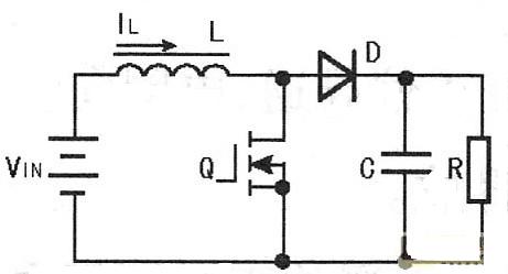 升壓型PFC主電路如圖1所示,其工作過程如下:當(dāng)開關(guān)管Q導(dǎo)通時(shí),電流IL流過電感線圈L,在電感線圈未飽和前,電流線性增加,電能以磁能的形式儲存在電感線圈中,此時(shí),電容C放電為負(fù)載提供能量;當(dāng)Q截止時(shí),L兩端產(chǎn)生自感電動勢VL,以保持電流方向不變。這樣,VL與電源VIN串聯(lián)向電容和負(fù)載供電。