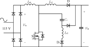 對于1.5kW功率等級,輸入電流有效值為15A,平均開關(guān)電流是13A,峰值電流為22A,需要電流定額至少為30A的開關(guān)器件。盡管這個方案提供了比較簡單的單級功率變換,但也存在一些缺陷,如半導(dǎo)體器件承受的電壓應(yīng)力較高、輸出電壓調(diào)節(jié)性能差,輸出電流紋波大。