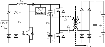 對于30kW·h以內(nèi)的儲能能力,隨充電狀態(tài)不同,電動汽車電池電壓在DC 200~450V范圍內(nèi)變化,變換器拓?fù)鋺?yīng)當(dāng)能夠在這一電池電壓變化范圍內(nèi)提供所需的充電電流。