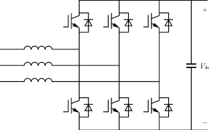 這是一種快速充電模式,主要針對長距離旅行情況進(jìn)行充電。充電器對應(yīng)高功率特性(>100kW),主要用于一些固定的充電站。對于100kW的功率等級,充電時間約為15min。為提高功率因數(shù),降低輸入電網(wǎng)諧波,變換器輸入端一般需要采用有源整流電路,如圖15所示。可以采用不同的控制方案,包括矢量控制,六階梯波控制,數(shù)字控制技術(shù)等。