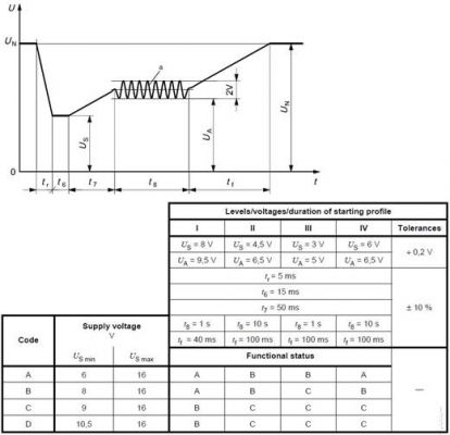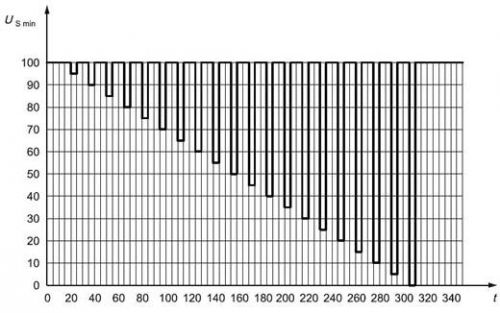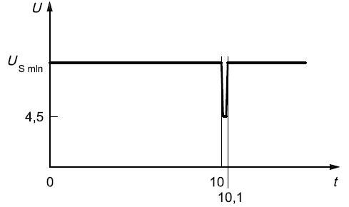 電壓驟降復位性能:檢驗電壓驟降的情況下,模塊的復位性能,適用于具有復位功能的設(shè)備。供電電壓以5 %速率從USmin 降到 0.95 USmin,保持5 s,再上升到USmin ,至少保持10 s并進行功能試驗。然后將電壓降至0.9 USmin等,以USmin的5%梯度繼續(xù)進行直到降到0V,然后再將電壓升到USmin。