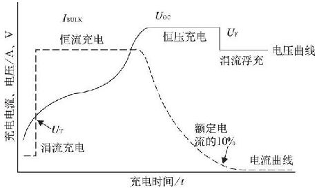 當(dāng)蓄電池電壓低于充電使能電壓UT , 充電器提供很小的涓流IT 進(jìn)行充電, IT 一般約為0. 01C( C 為蓄電池容量)