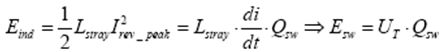 達(dá)到電流峰值tIpeak時,雜散電感中會儲存感應(yīng)電量,Coss中也會儲存電容電量。因此,可以進(jìn)行電量比較: