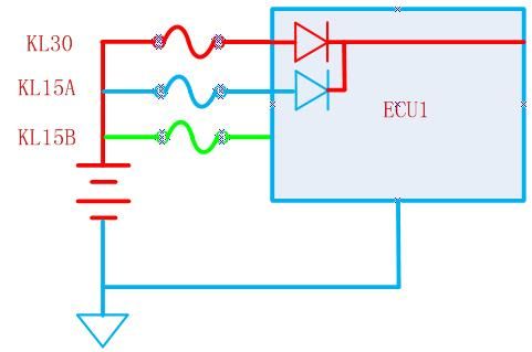 對(duì)于我們的模塊,我們會(huì)有很多電源線和負(fù)載輸入線,由于它們是從不同熔絲出來(lái)的,我們?cè)谌∪劢z不可能把所有的熔絲全部取出,因此有部分負(fù)載或者電源是導(dǎo)通的,主電源BATT是一定不通的,我們需要做的就是判斷我們的模塊是否會(huì)出現(xiàn)異常狀態(tài),外部負(fù)載通過(guò)潛在路徑給電源上供電或者導(dǎo)致模塊損壞的情況。