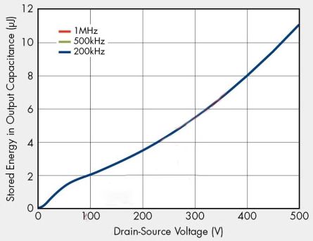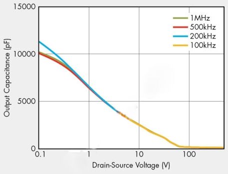 過去,許多設(shè)計人員都使用粗略假設(shè)來提供等效輸出電容值,因為輸出電容通常都指定為25V漏源電壓。不過,傳統(tǒng)的等效輸出電容值在實際應(yīng)用中卻沒有多大幫助,因為它隨漏源電壓變化,并且在開關(guān)導(dǎo)通/關(guān)斷期間不能提供準(zhǔn)確的儲能信息。在功率轉(zhuǎn)換器工作電壓下,新定義的輸出電容提供等效的儲能,能夠?qū)崿F(xiàn)更優(yōu)化的功率轉(zhuǎn)換器設(shè)計。