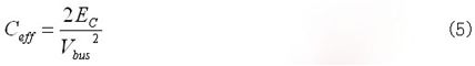 如果依據(jù)漏源電壓變化的輸出電容值可得,則輸出電容儲能可用公式(4)求出。雖然電容曲線顯示在數(shù)據(jù)表中,但要想從圖表中精確讀出電容值并不容易。因此,依據(jù)漏源電壓變化的輸出電容儲能將由最新功率MOSFET數(shù)據(jù)表中的圖表給出。通過圖3顯示的曲線,使用公式(5)可以得到期望的直流總線電壓下的等效輸出電容。
