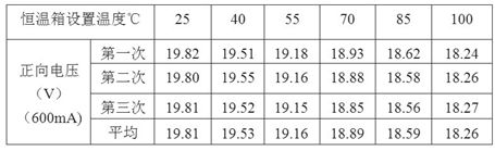 確定正向電壓與結(jié)溫的關(guān)系的試驗步驟為:1)將光源置入恒溫箱中;2)設(shè)置恒溫箱的溫度;3)待恒溫箱內(nèi)溫度充分平衡穩(wěn)定后,在光源兩端接入恒流源;4)迅速測量光源的正向電壓并記錄;5)重復(fù)上述步驟1)~(4),恒溫箱溫度由低到高,測得多點數(shù)據(jù)。