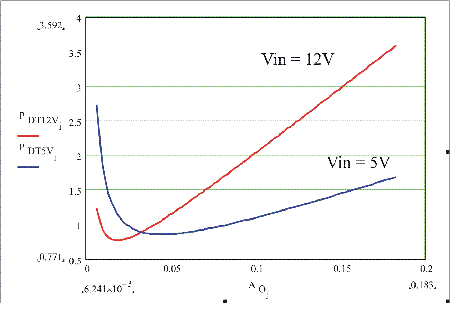 如圖5所示,功耗是裸片面積的函數(shù),周?chē)轻槍?duì)輸入電壓為5到12V的頂部MOSFET的最合適值。這清楚地表面,損耗高度依賴(lài)于裸片面積以及如果裸片面積增加或減少時(shí)這些損耗所增加或減小的劇烈程度。