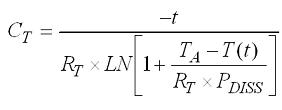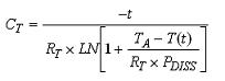 該模擬可以深入進(jìn)行,以描述器件的另一個(gè)熱屬性,稱之為熱容。正如將熱阻模擬為電阻,可以將熱容(CT,單位為J/℃)模擬為電容。將熱容與熱阻并聯(lián)獲得熱阻抗(ZT)。圖1所示為傳導(dǎo)傳熱的簡化RC模型。能源被模型化為電流源,熱阻抗被模型化為CT與RT并聯(lián)。