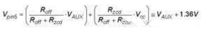 然后,施加在引腳5上的電壓就偏置。事實(shí)上,這就像是VAUX電壓與減小了1.36V的ZCD閾值比較。這樣一來(lái),新的實(shí)際ZCD閾值就是: