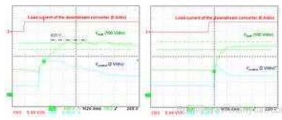圖12 沒(méi)有Cfb時(shí)(左圖)及有Cfb時(shí)(右圖)PFC段對(duì)負(fù)載階躍變化的響應(yīng)