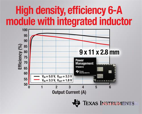 TPS84610 支持 2.95 V 至 6 V 的輸入電壓,可生成 0.8 V 低輸出,而且開(kāi)關(guān)頻率可在 500 kHz 至 2 MHz 之間調(diào)節(jié)。9 毫米 x 11 毫米 x 2.8 毫米的低噪聲模塊符合 EN55022 Class B 電磁輻射標(biāo)準(zhǔn),支持寬帶通信設(shè)備等噪聲敏感型應(yīng)用。