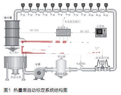 鑒于傳統(tǒng)的熱量表標(biāo)定裝置大都為手動系統(tǒng),操作繁瑣,標(biāo)定時間長,且容易引入人為失誤的現(xiàn)象,設(shè)計了一套熱量表流量自動標(biāo)定系統(tǒng)。系統(tǒng)在整個標(biāo)定過程中無需人為干涉自動完成,標(biāo)定時間短,只需30分鐘左右,流量修正系數(shù)與相關(guān)信息的寫入也是自動完成,避免了不必要的人為失誤。