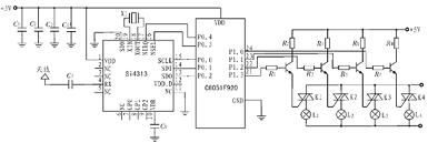 Si4313 的RX 端口經(jīng)電容C1與天線相連, 接收遙控調制載波信號。Si4313 與單片機之間的通信是通過SPI 總線實現(xiàn),SPI 總線讀寫操作由以下幾部分組成:讀寫標志(1 bit),地址(7 bits)和數(shù)據(jù)(8 bits)。讀寫標志位指示當前操作是讀還是寫;7 位地址指示操作對象, 可尋址128 個8 位控制寄存器中的任意一個; 數(shù)據(jù)域包含寫入或讀出的Si4313 內部寄存器的內容。Si4313 的SCLK、SDI、SDO、nSEL、nIRQ 端口分別與單片機的P0.0~P0.4 端口相連。SCLK 為時鐘接口;SDI為串行數(shù)據(jù)寫入端口, 由單片機對Si4313 進行數(shù)據(jù)寫入;SDO 為串行數(shù)據(jù)輸出端口,解調后數(shù)字信號由此端口輸出至單片機。單片機P1.0~P1.3 為控制端口,與開關電路相連。