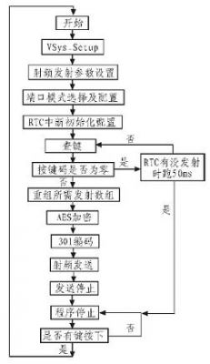 無線電發(fā)射系統(tǒng)的軟件設計主要通過C2 接口編程實現(xiàn)Si4010 內部集成的8051MCU 對無線發(fā)射電路的狀態(tài)進行控制。包括芯片初始化程序,鍵盤掃描及讀取程序,射頻參數(shù)設置程序,無線發(fā)射程序等。發(fā)射系統(tǒng)軟件流程如圖4 所示。