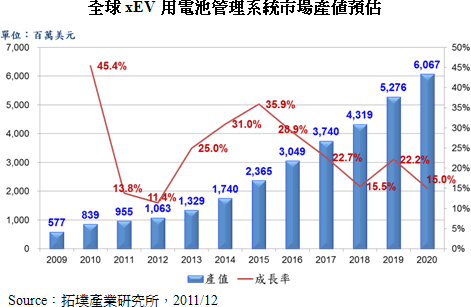 - 2012年全球BMS市場(chǎng)產(chǎn)值成長(zhǎng)逾10%