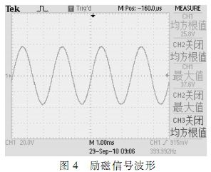 通過數(shù)字示波器觀察電路勵磁信號,自整角機輸出信號及接口電路變換輸出信號,結(jié)果波形如圖4~圖8所示。