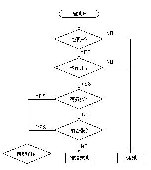 印刷機整體的電氣設(shè)計還是比較復(fù)雜的,對時間的要求也很嚴格。在機器的很多地方裝有接近開關(guān),用來檢測不同的時間點。在印刷過程中,走紙的好壞是影響機器質(zhì)量的一個重要環(huán)節(jié)。所謂紙走的好壞,指的是無歪張,雙張等現(xiàn)象,如果有歪張,雙張現(xiàn)象,在高速情況下,就會將走壞的紙,卷入機器內(nèi),從而破壞膠皮,給用戶帶來很大損失。此過程流程如下: