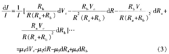 但在實(shí)際情況下電阻的溫度系數(shù)和基準(zhǔn)電壓的溫度系數(shù)將影響輸出電流的穩(wěn)定性。對(duì)式(2)進(jìn)行全微分并化簡(jiǎn)可得電流穩(wěn)定度的表達(dá)式: