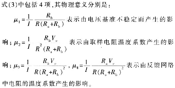 式中,Vc為基準(zhǔn)電壓,Ra、Rb為反饋網(wǎng)絡(luò)中的電阻,R為取樣電阻,在理想情況下R、Ra、Rb恒定不變。