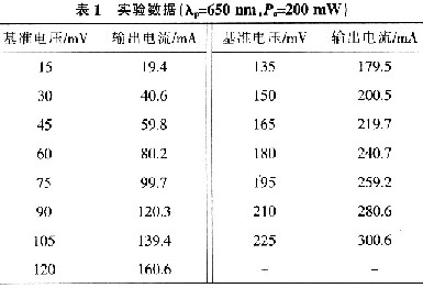 圖5結(jié)果表明基準(zhǔn)電壓與輸出電流成正比例關(guān)系,通過(guò)調(diào)節(jié)基準(zhǔn)電壓,可以改變LD的輸出功率,即LD輸出功率連續(xù)可調(diào)。