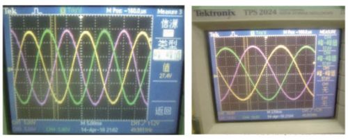 光伏并網(wǎng)發(fā)電系統(tǒng)要實(shí)現(xiàn)并網(wǎng),必須使逆變輸出與電網(wǎng)電壓的幅度、相位與頻率達(dá)到一致,否則將會使電網(wǎng)諧波增加、電能質(zhì)量下降,并產(chǎn)生并網(wǎng)環(huán)流,甚至造成光伏發(fā)電系統(tǒng)的損壞。因此在并網(wǎng)過程中必須進(jìn)行同步鎖相控制、輸出電壓幅度控制以滿足并網(wǎng)的要求。根據(jù)IEEEStd1547-2003規(guī)定最大相位誤差為20度,瞬時(shí)電壓誤差不能超過電網(wǎng)電壓的10%、最大頻率誤差不能超過0.3Hz。圖5為獨(dú)立工作模式時(shí)純電阻負(fù)載兩端的電壓波形。