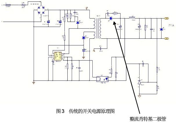首先,從供電電源來看,如圖3是一個傳統(tǒng)的開關(guān)電源原理圖,如果要將5V降為4V,整流肖特基正向壓降所占輸出電壓比重必然增加,開關(guān)電源輸出電壓越低,因整流肖特基正向電壓比重越高(其比重X=V壓降/V輸出,輸出從5V降為4V,加入其壓降為0.5V,則其比重將從0.1上升為0.125,提高25%),電源輸出效率就越低,這對于LED屏幕整體節(jié)能效果并不明顯,所以采用這一電源設(shè)計原理顯然是是無法實現(xiàn)電源工作效率的提升。同時,5V是標稱值電壓,在市場運用上已經(jīng)相當成熟,啟用新的開關(guān)電源電源電壓,降低效率的同時只會增加成本,品質(zhì)也難保障,實現(xiàn)有困難。