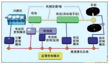 正如兩個圖中所示,要使混合型汽車良好工作需要使用許多嵌入式控制器。這些控制器都是相互連接的,通常采用高速的控制器局域網(wǎng)(CAN)總線來互連。這些控制器中的固件必須控制系統(tǒng)中各自的部分并同其它控制器實時協(xié)調。這要求設計和開發(fā)許多新的控制算法和軟件,甚至對發(fā)動機、傳輸和防抱死剎車系統(tǒng)(ABS)等成熟的控制系統(tǒng)也是如此。