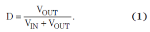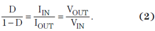 假設(shè) 100% 效率占空比 D,用于 CCM 運(yùn)行的 ZETA 轉(zhuǎn)換器,其為: