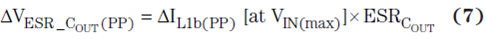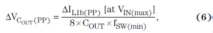 其中 fSW(min) 為最小開關(guān)頻率。方程式 7 計(jì)算了完全由輸出電容 ESR 引起的輸出紋波電壓部分: