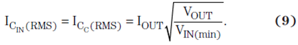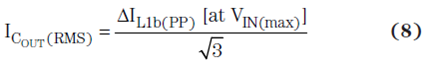 輸出電容必須有一個(gè)大于電容 RMS 電流的 RMS 電流額定值,其計(jì)算方法如方程式 8:
