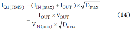 其中,QGD 為柵極到漏極電荷,QG 為 FET 的總柵極電荷,IGate 為最大驅(qū)動(dòng)電流,而 VGate 為控制器的最大柵極驅(qū)動(dòng)。Q1 的 RMS 電流為: