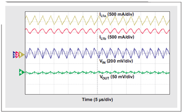 圖 3 顯示了通過各種電路組件的電流。Q1 開啟時(shí),輸入電源的能量被存儲(chǔ)在L1a、L1b 和 CC 中。L1b 還提供 IOUT。Q1 關(guān)閉時(shí),CC 持續(xù)為 L1a 提供電流,而 L1b 再次提供 IOUT。